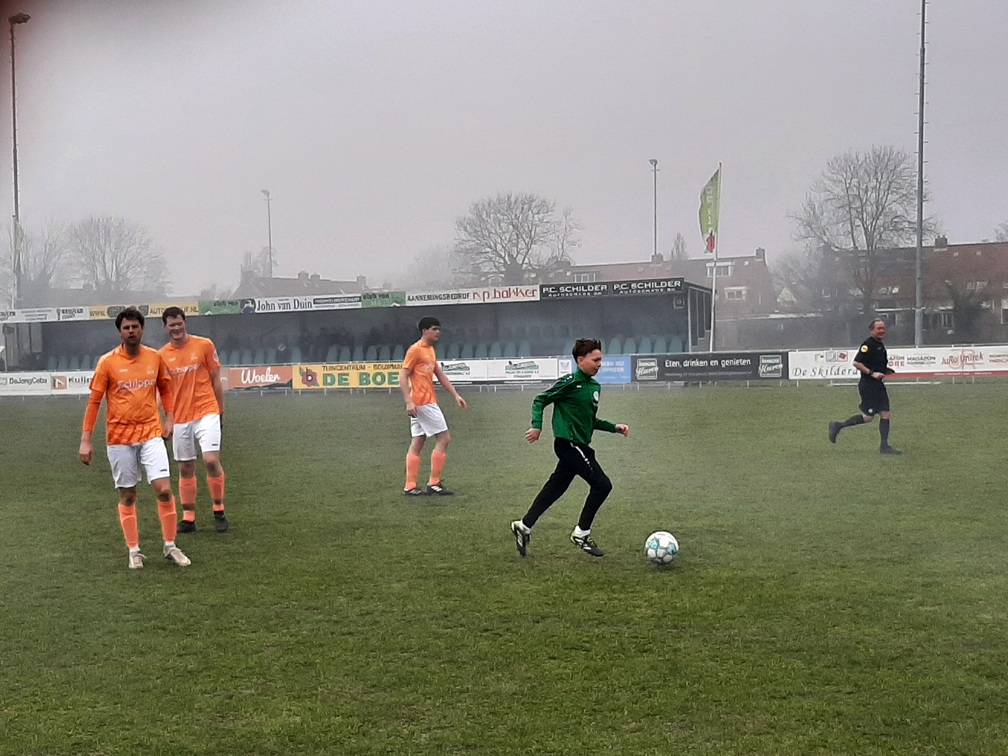 Guur, koud en mistig was het zondag 8 februari tijdens DE derby van het seizoen tussen Grasshoppers en VVS. Dit onaantrekkelijke weer weerhield honderden supporters niet om toch te gaan kijken naar deze altijd spannende wedstrijd. Ook zaten er een tiental eregasten afgeschermd door een afzetting op de mooiste plek bij het A-veld lekker aan een koude versnapering. Zij hadden tijdens de laatste gemeenschapsveiling in Spanbroek een aantal kavels gekocht waarbij ze als eregasten behandeld werden voor, tijdens en na de wedstrijd. Je kon zien dat ze het prachtig vonden!