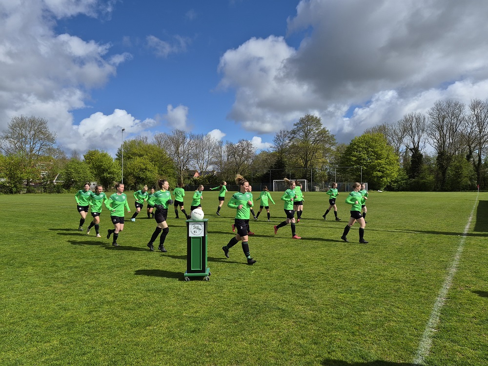Ja hoor, Vrouwen 1 zijn afgelopen zondag 19 april volledig terecht kampioen geworden in de 4e klasse. Voorwaarde was dat ze deze cruciale wedstrijd thuis moesten winnen van Winkel. De spanning stond vooraf op de gezichten van de speelsters af te lezen. Gelukkig werden ze aangemoedigd door een groot aantal Grasshoppers-toeschouwers langs de lijn. Voor de aftrap werd de bal door de pupil van de week Lot Ursem overhandigd aan haar tante Mariska. En na de aftrap is het altijd wel even spannend: ze gaan toch wel winnen vandaag?! Stel dat Winkel als 1e scoort? Het duurde even maar de doelvrouw van de tegenstander moest uiteindelijk toch de bal voor de 1e keer uit het net vissen. Bij 2-0 voelde je de spanning op en rond het veld afnemen. Het gaat lukken! Uiteindelijk werd Winkel met maar liefst 6-0 verslagen en was het groot feest!
